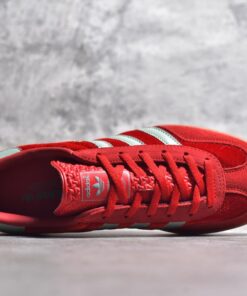 • Classic Colorway: Vibrant red with white three stripes.