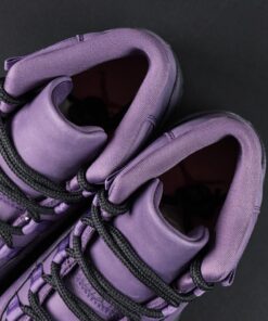 - Purple suede upper with a matte finish